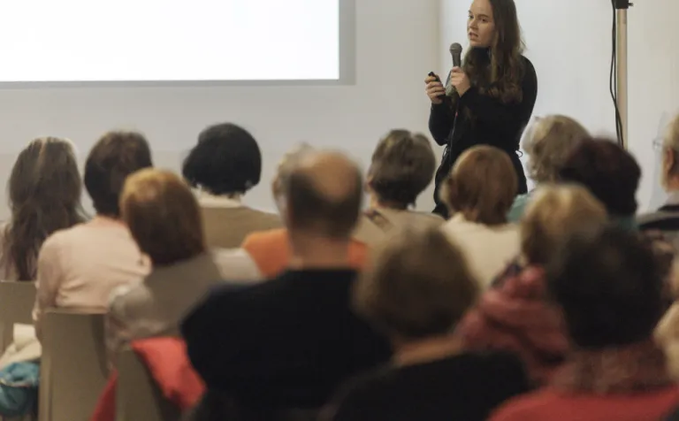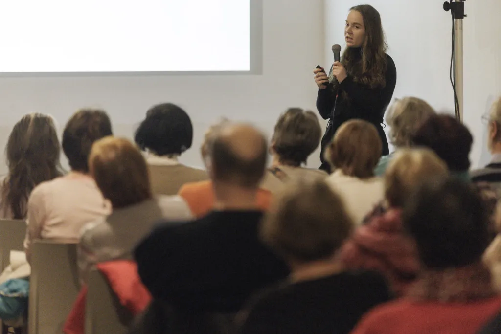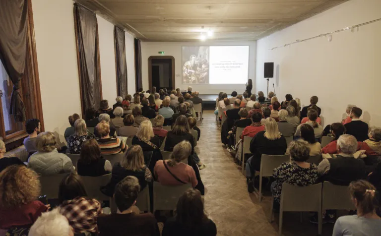 Prednášky sa zhostila kurátorka zbierky starej maľby a sochy GMB Dominika Zbončáková, ktorá patrí k najmladšej generácii bádateľov, no svoju rolu zvládla ako skúsená profesionálka a odborne i s primeranou dávkou humoru nás vnorila do témy. Teší nás, že sme v nej objavili nádejnú bratislavskú historičku, ako aj mimoriadne vysoká účasť obecenstva na prednáške.