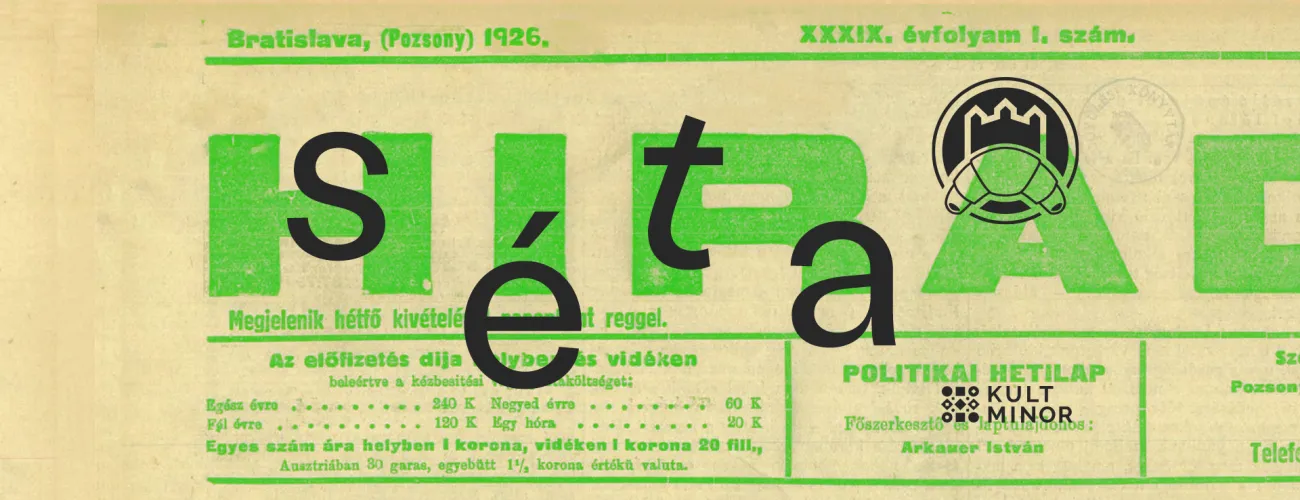 Novinár a sprievodca Árpád Korpás nás vráti v čase. Čo premietali kiná, čo hrali divadlá, o čom písali miestne noviny v Bratislave pred sto rokmi, v roku 1926? Aké budovy zmizli alebo vyrástli zo zeme a ako sa zmenilo mesto, ktoré už sedem rokov patrilo k Československu? Vydáme sa po stopách politických záležitostí, spoločenských a kultúrnych podujatí, vzrušujúcich zločinov. Dotkneme sa aj situácie Maďarov v Bratislave. Nazrieme do už neexistujúcich obchodov, prehliadame inzeráty a spoločne hľadáme ducha Bratislavy tej doby. Nastúpte na časostroj Bratislavských rožkov! Vrátime sa do roku 1926!