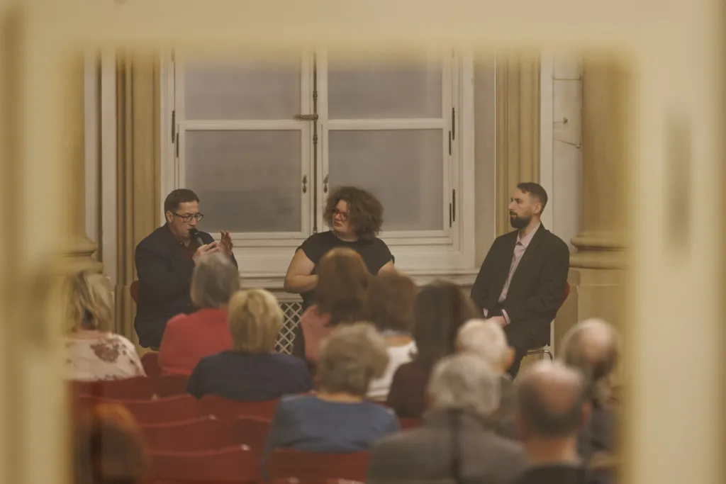 V prvej časti podujatia moderátorka Andrea Makýšová Volárová vyspovedala oboch podpredsedov OZ Bratislavské rožky Jána Vyhnánka a Árpáda Korpása. Témou rozhovoru bol ich vzťah k Bratislave, k občianskemu združeniu, ale aj k pochúťke – bratislavským rožkom. Obaja podpredsedovia sú zároveň sprievodcami po Bratislave a návštevníci podujatia sa dozvedeli aj čo-to zo sprievodcovskej kuchyne. Zhodli sa na tom, že Bratislavčanom sa človek nerodí, ale stáva a nezáleží na rodisku, ale na rozvíjaní vzťahu k mestu.